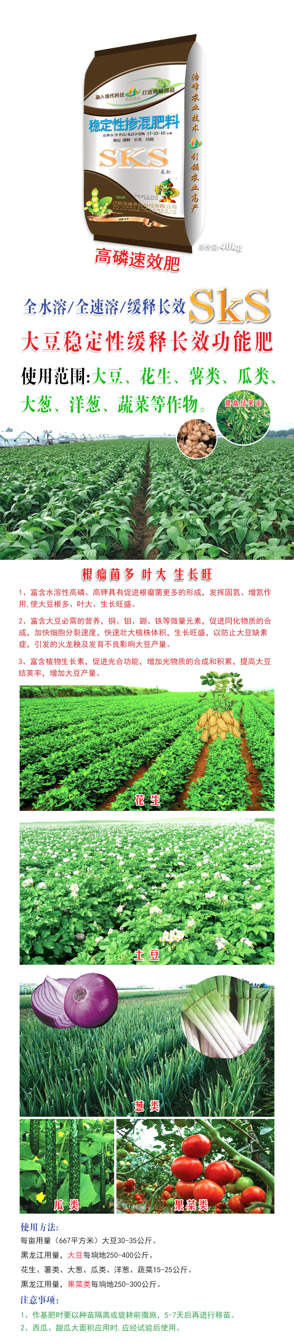 1、富含水溶性高磷、高鉀具有促進根瘤菌更多的形成,發(fā)揮固氮、增氮作用,使大豆根多、葉大、生長旺盛。